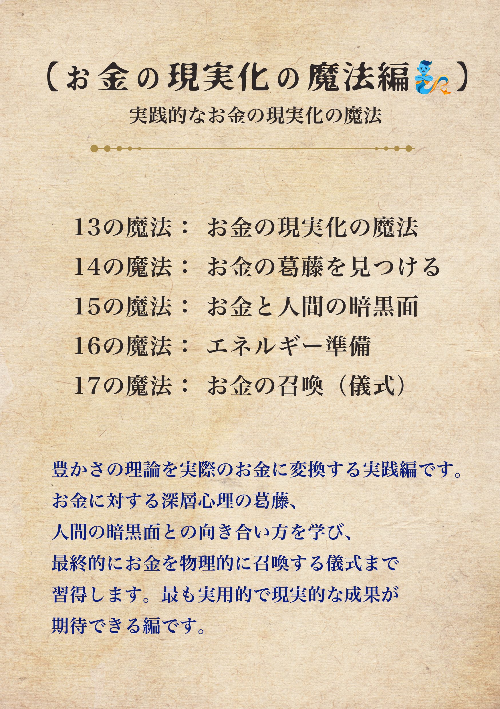 古代から伝わる『魔法の叡智』を、現代社会で活用できる実践的な形に昇華させた、豊かさの現実化メソッドです